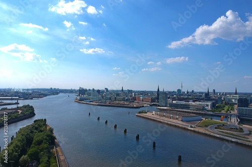 Fototapeta premium Hamburg Elbe mit Hafencity Luftbild