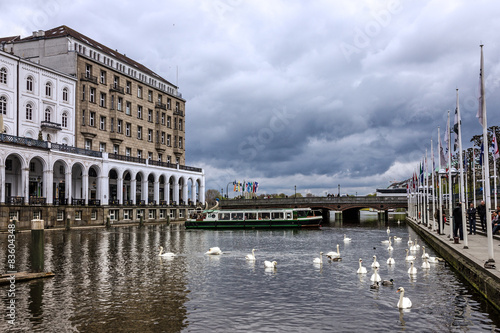 © Travel Faery, Naklejka premium Hamburg, Germany, old town river view