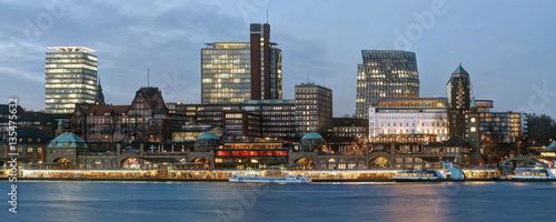 © Carl-Jürgen Bautsch, Obraz premium Hamburg Landungsbrücken Sankt Pauli am Abend