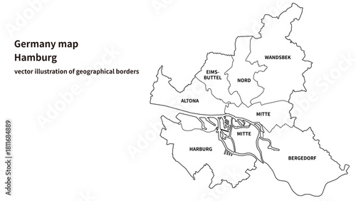 © lee_hak, Obraz premium Hamburg Map – Detailed City-State Map of Germany