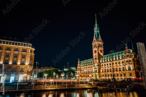 Fototapeta premium Hamburg Rathaus City Hall at night. Long exposure shot of illuminated...