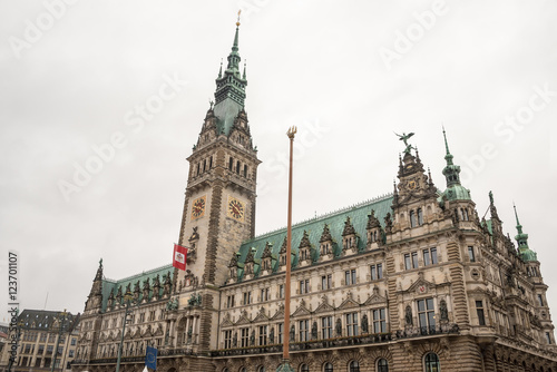 Fototapeta premium Hamburg Rathaus in grauem Himmel