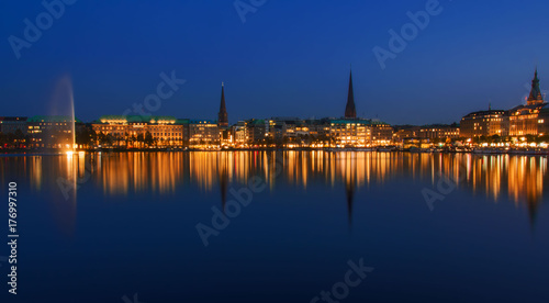 Fototapeta premium Hamburger Alster bei Nacht