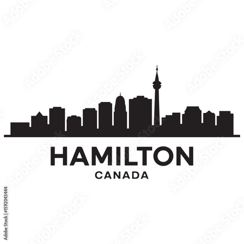 © firoz, Naklejka premium Hamilton skyline horizontal banner. Hamilton, Canada. Vector template for your design. Vector black silhouette. with white background