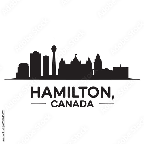 © firoz, Naklejka premium Hamilton skyline horizontal banner. Hamilton, Canada. Vector template for your design. Vector black silhouette. with white background