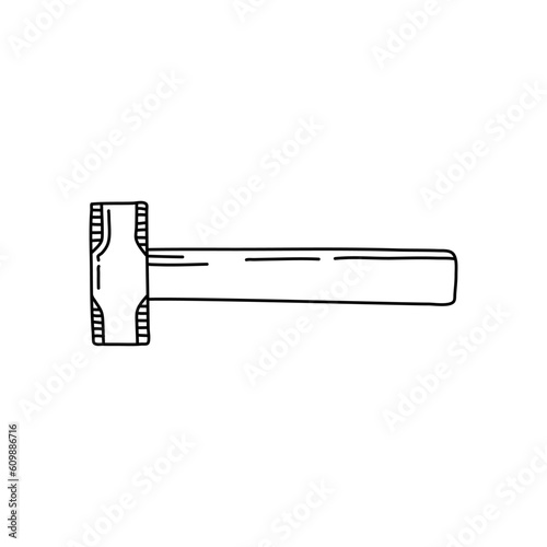 Obraz premium Hammer Hand drawn doodle vector icon, isolated on white background