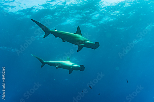 Fototapeta premium hammerhead sharks in warm currents in the Galapagos Islands