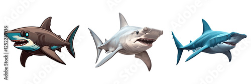 Obraz premium Hammerhead sharks various colors and s swimming deep sea habitat. Their...