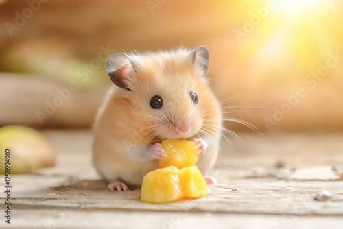 © 자인 김, Fototapeta premium hamster munching on fruit