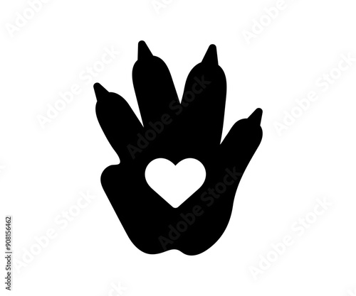 Fototapeta premium Hamster paw with a heart icon. Black vet logo element. Paw print vector symbol, illustration.