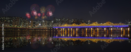 © Thasist, Obraz premium Han River and Bridge in Seoul, South Korea.