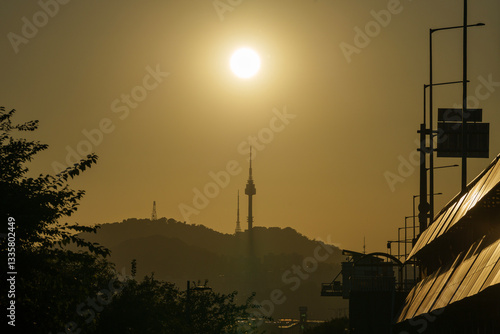 © NATTHAWAT88, Obraz premium Han River, traffic and sunset skyline Stock Photo