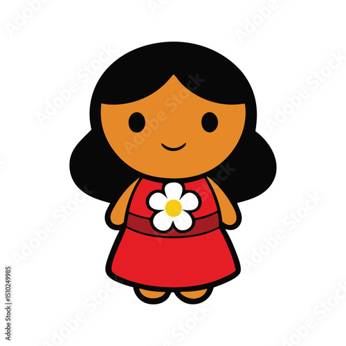 © Tirthomoni, Obraz premium Hana character in kawaii art style ideal for fun print projects vector illustration.