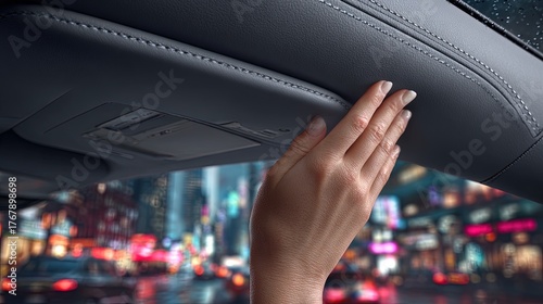Obraz premium Hand Adjusting Car Sunroof At Night In City
