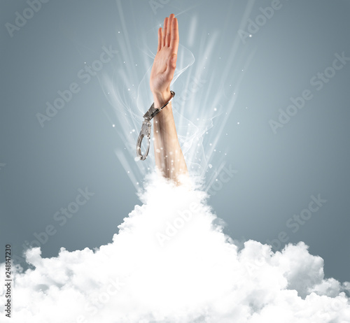 © ra2 studio, Naklejka premium Hand breaking out from cloud