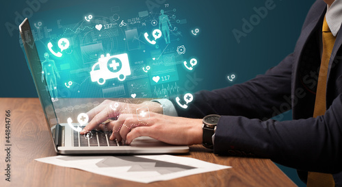 © ra2 studio, Naklejka premium hand browsing on the internet for medical issues