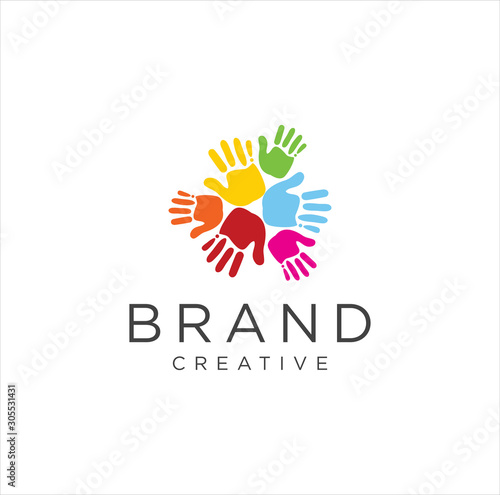 © blueberry 99d, Fototapeta premium Hand circle logo colorful Design Vector illustration . Illustration Of Colorful Human Hand Circle