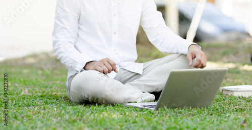 © Nattaporn, Naklejka premium hand close up young asian business man,