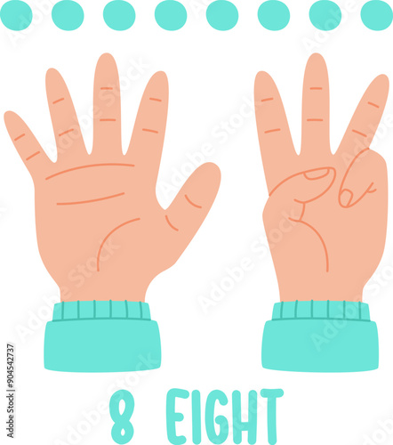 © Mykola Syvak, Obraz premium Hand Counting Eight Fingers