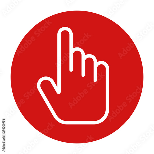 Obraz premium Hand cursor click icon flat red round button vector illustration