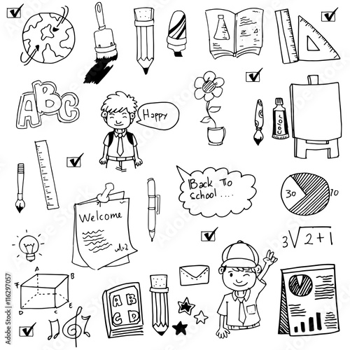 © wongsalam77, Obraz premium Hand draw doodle set school