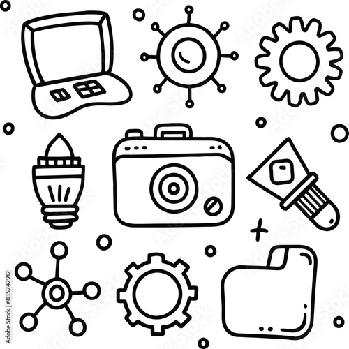 Obraz premium Hand draw technology sketch icon doodle set design for coloring book. Technology icon coloring pages