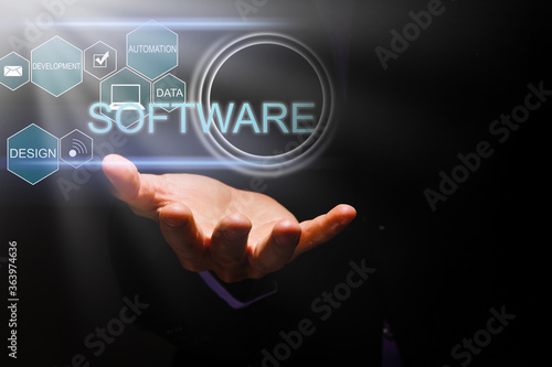 © Angelov, Fototapeta premium hand drawing blank flow chart on new modern computer as concept