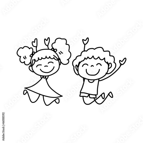 Fototapeta premium hand drawing cartoon happy kids