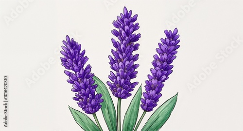 © Arceli, Obraz premium Hand drawing clipart of a purple lavender stem on plain white background