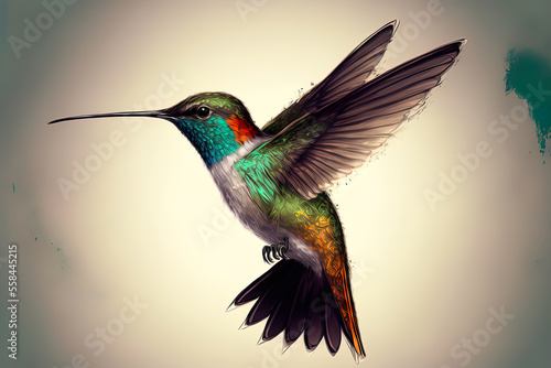 © Fernando, Fototapeta premium hand drawing of colorful hummingbird