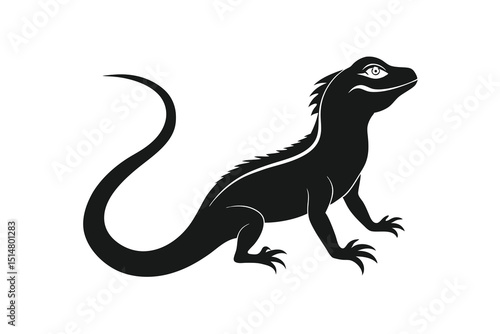 © Mahinur, Fototapeta premium Hand drawing silhouette basilisk isolated on white background