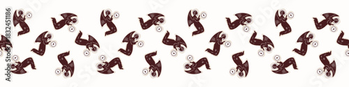 © Limolida Studio, Obraz premium Hand drawn angelic messenger for Christian Christmas vector border. Lino cut Angels with star of Bethlehem trim. Religious nativity scene washi tape.