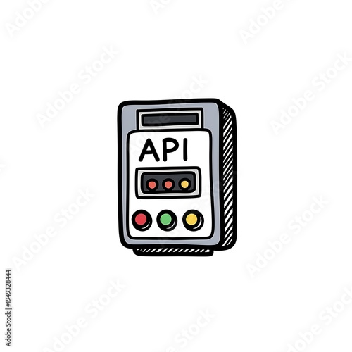 Fototapeta premium Hand-drawn API interface icon with colorful status buttons and digital connectivity concept