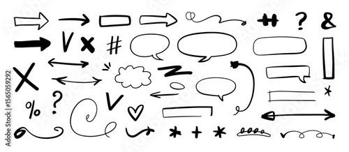 Obraz premium Hand drawn arrow, speech bubble, symbols sketch vector elements