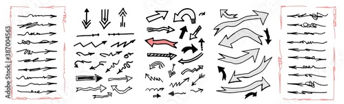 Obraz premium Hand drawn arrow vector set. Doodle style vector illustration.