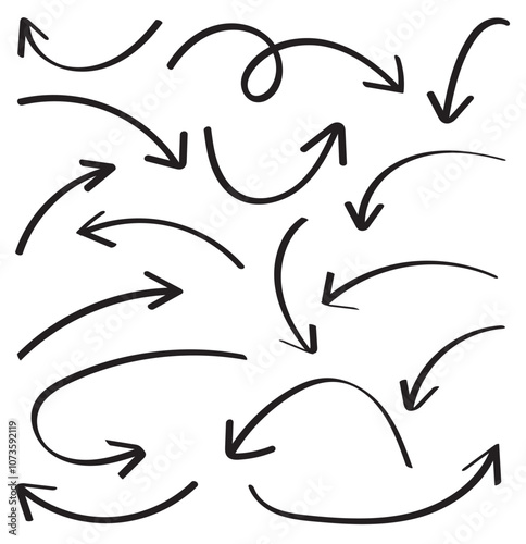 © TinyStock Studio, Naklejka premium Hand drawn arrows collection Set simple flat arrows isolated on white background. Arrow mark icons and arrow paint. Stock vector