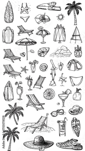 © Qiqi, Obraz premium Hand-drawn beach vacation items