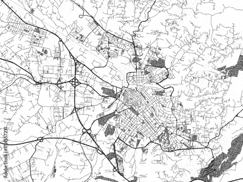 Fototapeta premium Hand-drawn black and white city map of Sassari, Italy, ready for wall art or...