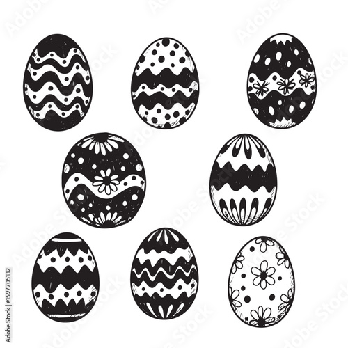 Fototapeta premium Hand drawn black and white easter eggs with various decorative patterns for springtime celebrations