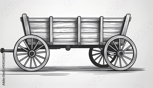 © Janet, Fototapeta premium hand drawn black and white illustration of an old wooden farm wagon with four wheels