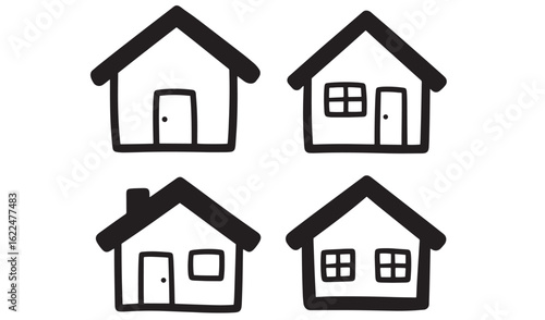 Fototapeta premium Hand drawn black and white illustrations of various house designs and concepts