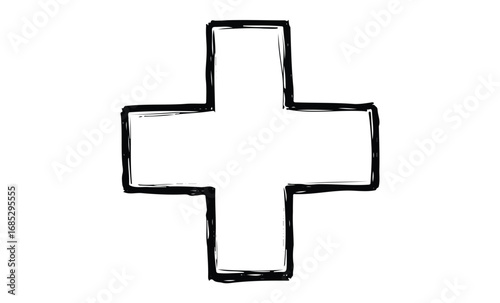 © Mr. Stocker, Fototapeta premium Hand-drawn black and white sketch of a bold cross symbol design. Vector retro hand drawn illustration