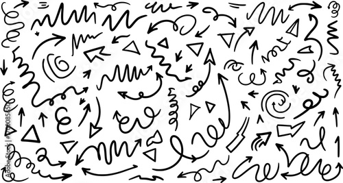 © HADI INCREDIBLE, Obraz premium Hand-drawn black doodle arrows set collection in different shapes and directions on white background