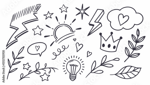 Fototapeta premium Hand Drawn Black Ink Doodles On White Background