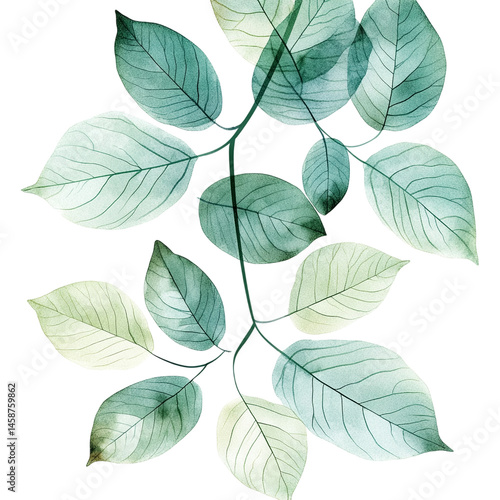 © dhruvik, Obraz premium Hand-Drawn Blue and Grey Watercolor Leaves Isolated