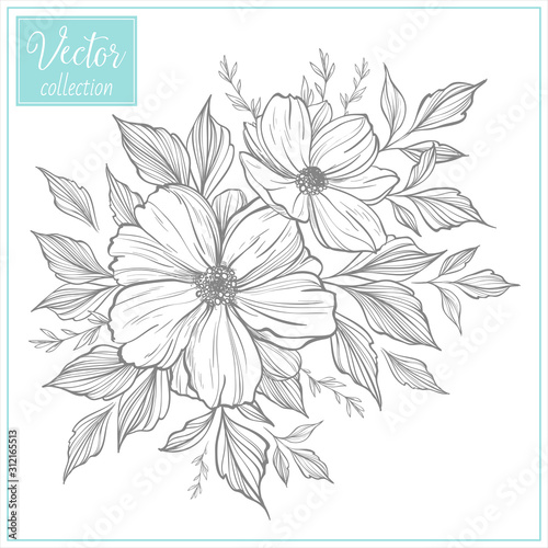 Obraz premium Hand Drawn Botanical Flowers. Set of plant elements. Vector Collection of...