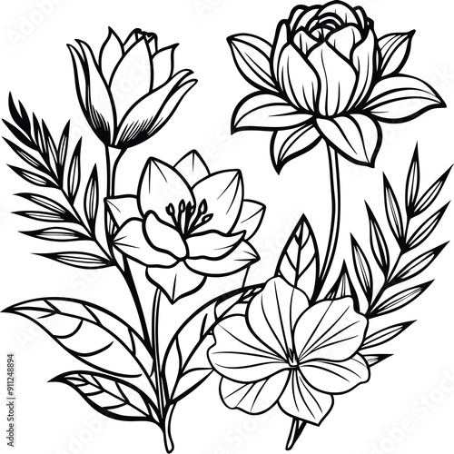 © Jihad, Fototapeta premium Hand-drawn botanical set silhouettes of flowers