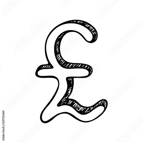 Naklejka premium Hand drawn british pound currency symbol. Brush stroke doodle. Single element for design