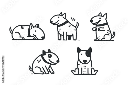 Obraz premium Hand-drawn bull terrier icons in bold black lines, minimalistic and fun