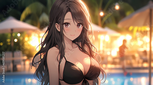 Obraz premium hand drawn cartoon anime cool swimsuit girl illustration in summer